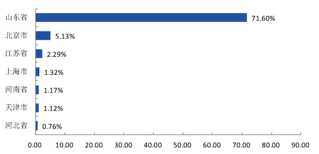 研究生就业地区以省内(山东省)为主,占比为71.60%;
